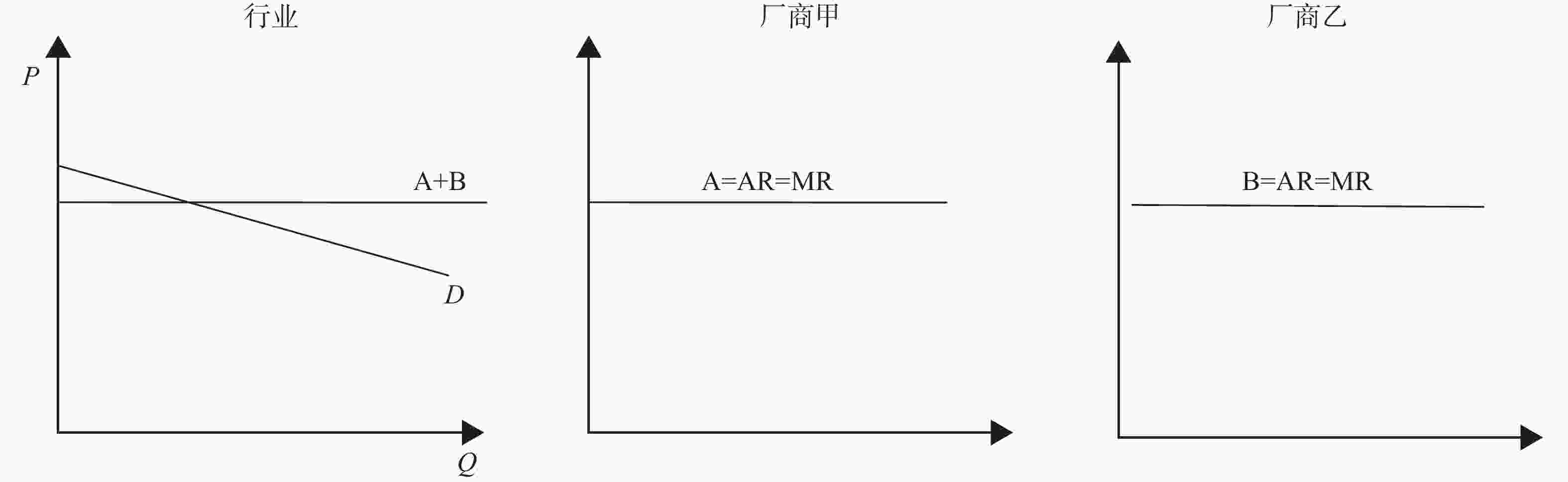 这种情况说明,行业的需求曲线并不是所有厂商曲线简单的叠加,而是厂商间博弈的结果。原因就是,行业是产品价格的决定者之一(另一决定者是需求),受需求定理的约束,因面对的是一条向下倾斜的曲线;厂商则是产品价格的接受者,面对的是一条水平的需求曲线,即平均收益等于边际收益,它们之间的关系如图8所示,即行业的需求曲线并不是所有厂商曲线的水平叠加。这种情况,意味着行业与厂商在资源配置上存在着不可调和的矛盾,不可能同时实现最优和均衡。新古典经济学显然忽视了行业与厂商之间的本质区别,以厂商在行业均衡前提条件下进行的资源再配置状态代表行业甚至整个社会的资源配置状况,从而出现严重的合成谬误。