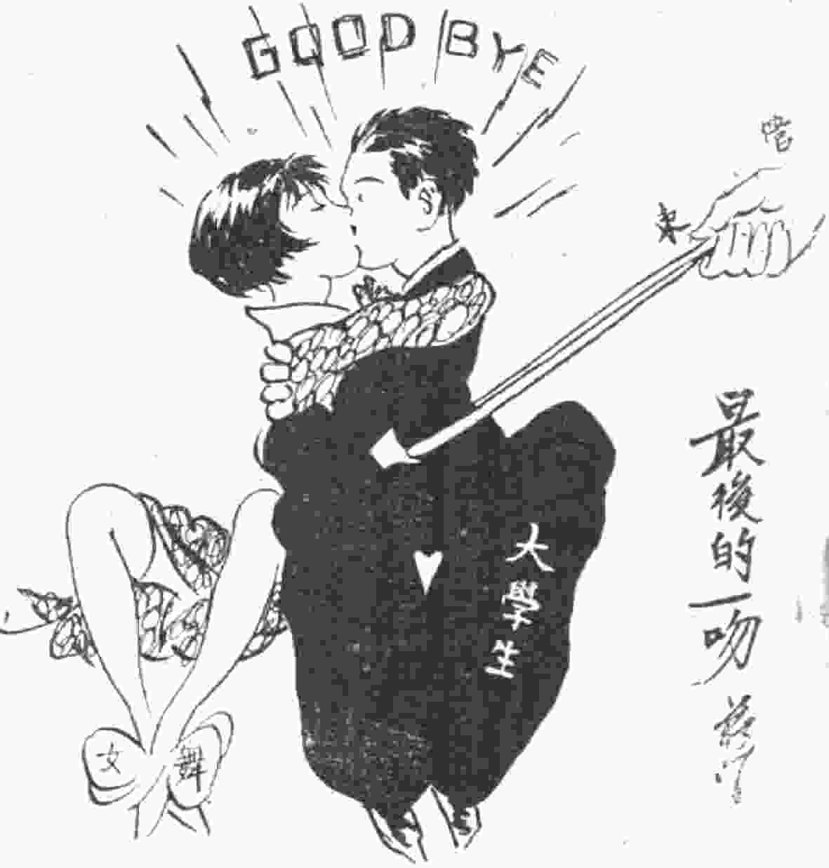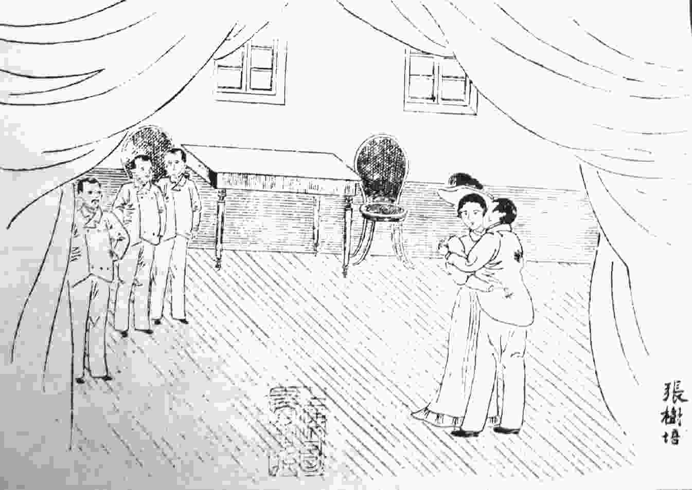 《眉语》1915年第10期。徐枕亚(1889−1937) 少年叹曰:“此所谓以死人瘗死人,无可奈何,只得自寻收局之一着。吾妻乎,今夕可行接吻之礼乎?”女郎垂首不语,似无拒意。少年进抱其纤腰,俯而吻之,为状至怜爱,继复哭曰:“今夕一吻,为余与妹最初之吻,亦为余与妹最后之吻矣。” 《余之妻》,小说丛报社,1915年。 包天笑(1876−1973) 且临别时之惨状,要可推想而知,除祈祷与盟誓之外,亦惟有频频接吻而已……于是两人跪于小十字架前,重申前誓。誓毕即起,时已促矣。亨利即一跃而出,女郎抗声呼之,声至惨恻,亨利不忍不返。于是两人复申最后之誓、复流最后之泪、复接最后之吻。亨利知不可复留,奋身而去。 《历史小说·嫁衣记》,